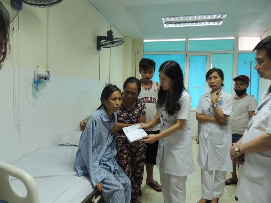 Chiều ngày 21 tháng 08 năm 2018, thay mặt cho cán bộ nhân viên tại Viện, PGS.TS Trần Thị Quỳnh Chi đã tới thăm hỏi, động viên mong muốn chị Thủy mau khỏi bệnh và gửi tới chị một số phần quà hiện vật, sự hỗ trợ về chi phí khám chữa bệnh của chị tại Viện Y học biển. Gia đình chị đã tiếp nhận phần quà và gửi lời cám ơn tấm lòng đến các Y bác sĩ trực tiếp điều trị.